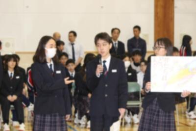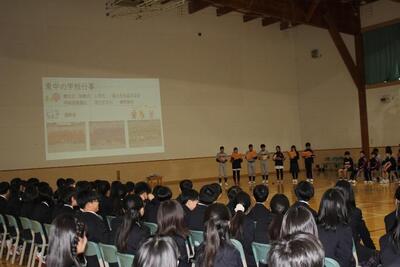 昨日入学した新入生に向けて、生徒会役員が主体となり、生徒会のしくみや部活動の紹介などを行いました。
